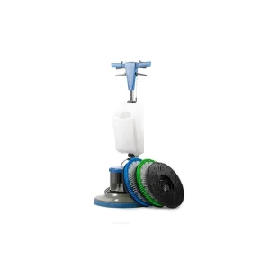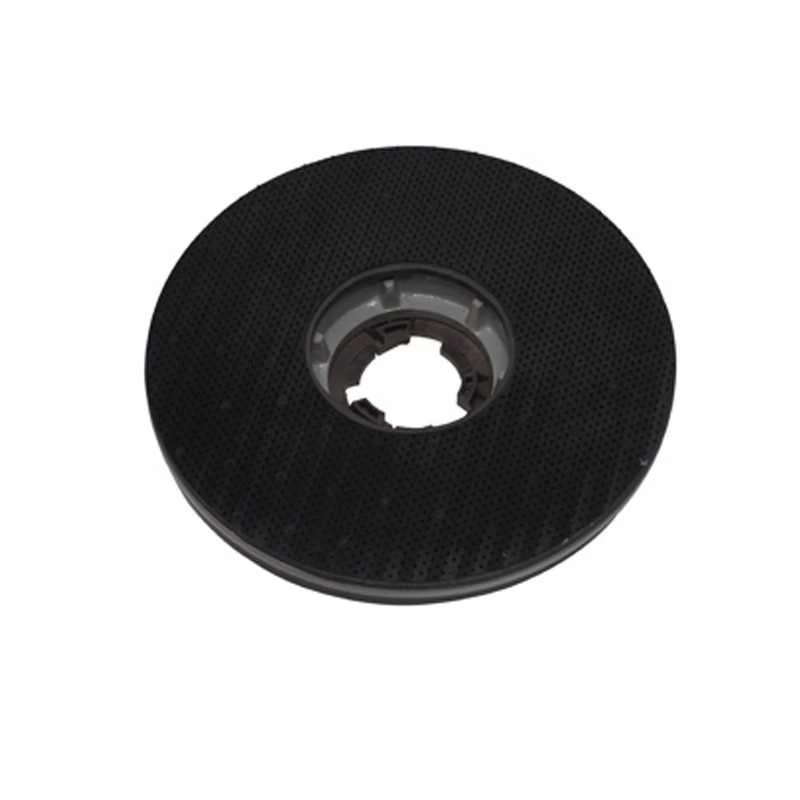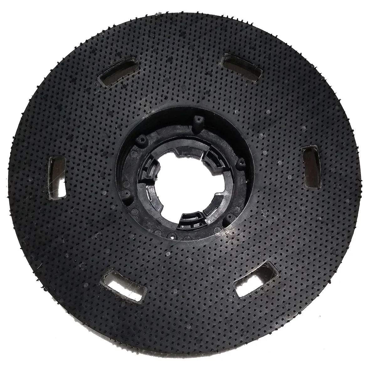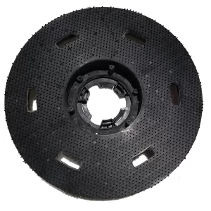 El Porta pad de 17 pulgadas es un disco negro de plástico con base de agarre multipunto, que se acopla a la maquina y que permite una adhesión de contacto entre la maquina abrillantadora y los diferentes tipos de pads. Gracias a este accesorio; podrá utilizar los discos abrasivos que según su codificación por color identificar para cada superficie a tratar según sea la necesidad de cada piso. El porta pad se puede reemplazar muy fácilmente; lo que permite poder adaptar también los diferentes tipos de cepillos para los diferentes tipos de uso, modelo y marca que sea compatible con la maquina abrillantadora a utilizar.